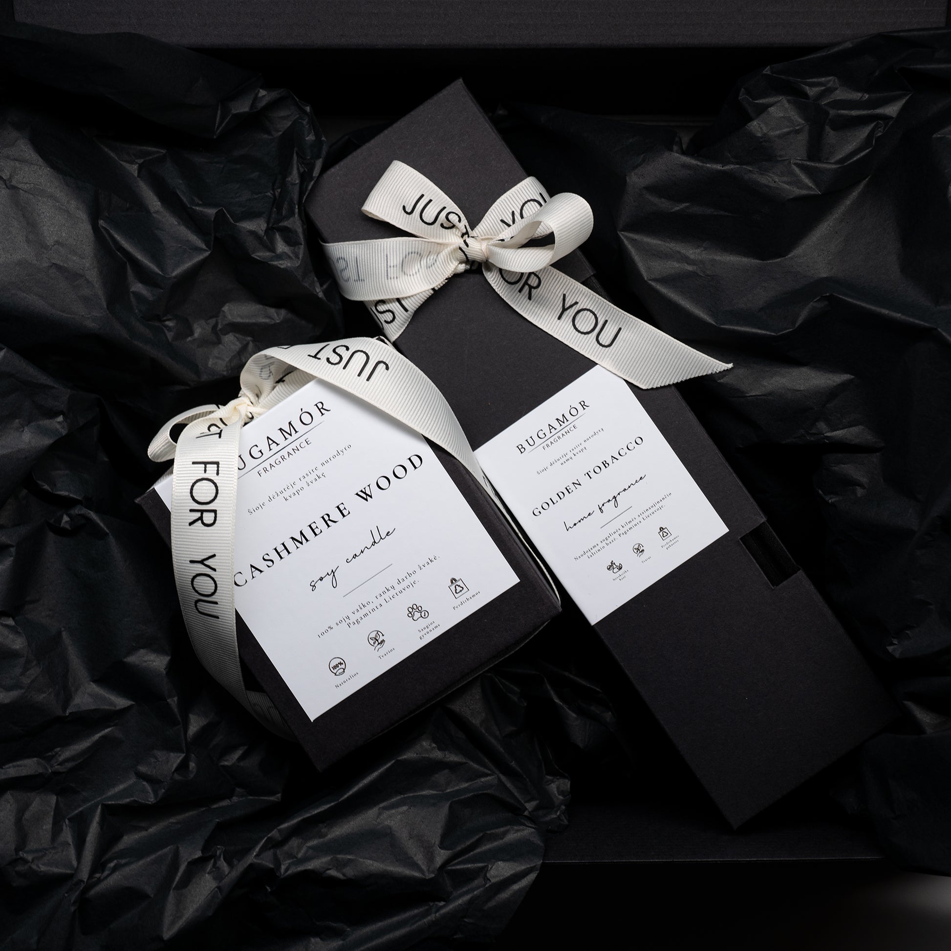 Mūsų rinkinį sudaro kruopščiai atrinkti produktai: 100ml namų kvapas ir 300 ml rankų darbo sojų vaško žvakė. Tai derinys, kuris pripildys jūsų namus išskirtiniais aromatais ir jaukumu.